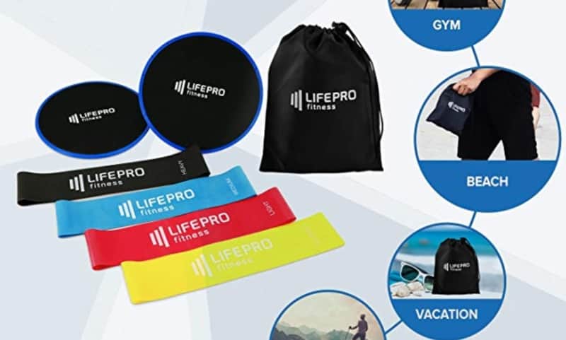 I use this set of sliders and loops from Lifepro. The sliders included in this set are good — but the bands are only OK. They’re super thin, and they can roll, which is annoying. On the other hand, though, there are some exercises that require bands this flexible. So though I don’t love them, I need them.