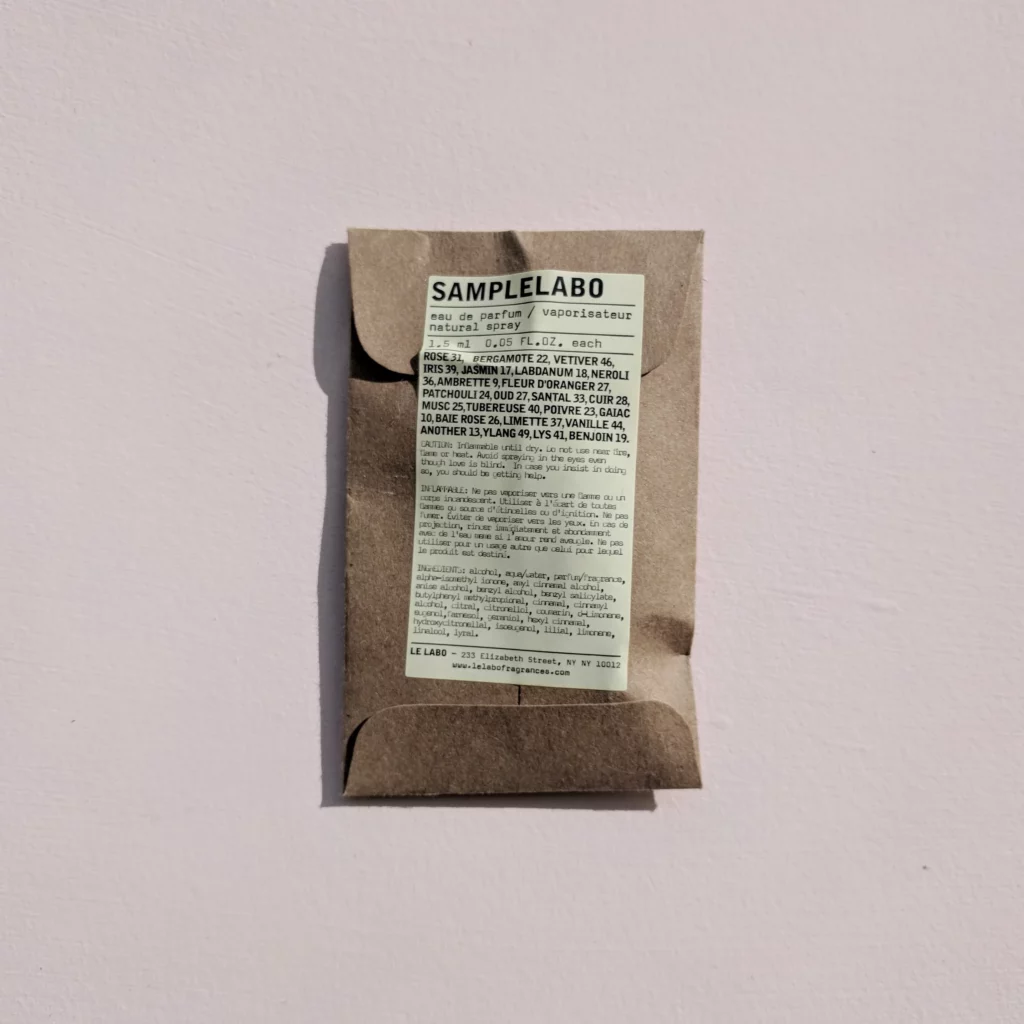 They say: “A delicate balance of cedrat and ginger – fresh, acidic, and with an addictive candied sweetness – resting on a foundation of sensual Le Labo-ness which often means woods, musks, and a generous note of ambergris.”