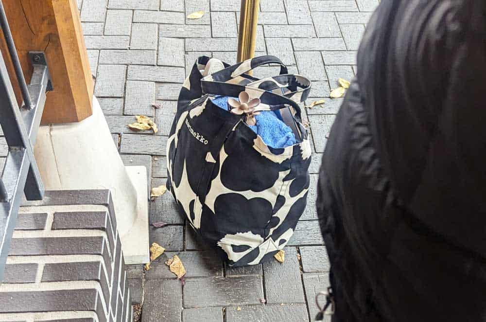 Unlike my IKEA bag-toting co-line-ists, I brought nothing but a book and a phone (the latter of which I was required to leave in the locker room — the whole complex is device-free), so I rented two towels and a robe, and I bought, as required, a pair of incredibly uncomfortable thongs. (I would have been fine with a bath towel from the hotel, but I didn’t know that, and much happier in my own Havaianas.) I opted for the women-only changing room (there’s a mixed one as well) and a locker in view of a security camera (I’m still not sure why I was asked about this — maybe because it meant that I would also be in view of it? I asked but didn’t get a clear answer.) So off I went, with a Swatch-like wristband that would record my time spent there — you stay as long as you like, and pay based on that — as well as any purchases at the café and would provide access to my locker.