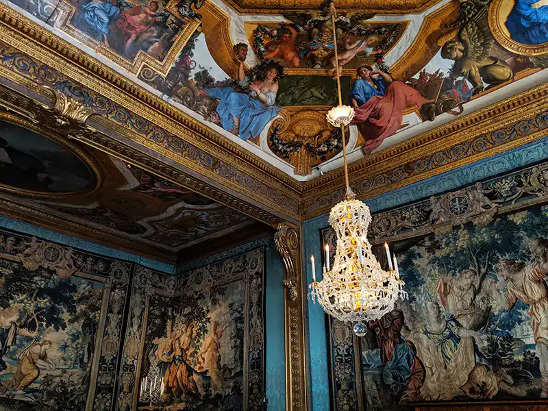 Vaux Le Vicomte interiors, with paintings by Charles Brun